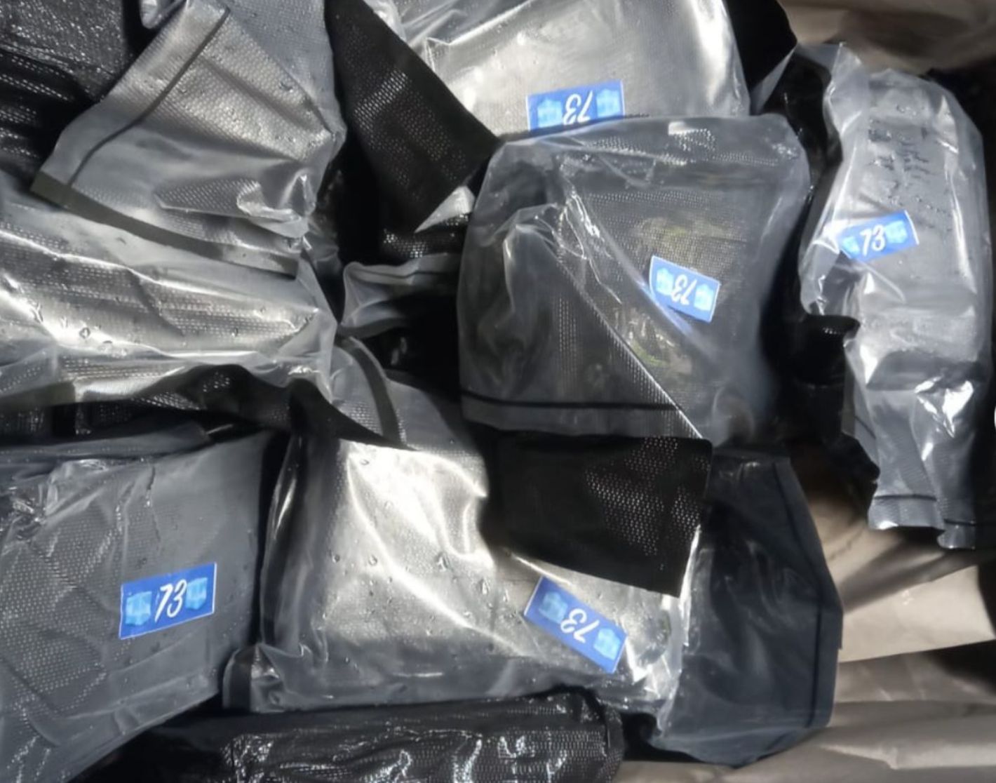 Con apoyo de canes de detección, los agentes revisaron el equipaje y ubicaron varios paquetes rectangulares de color negro, presuntamente vinculados al tráfico internacional de sustancias ilícitas.