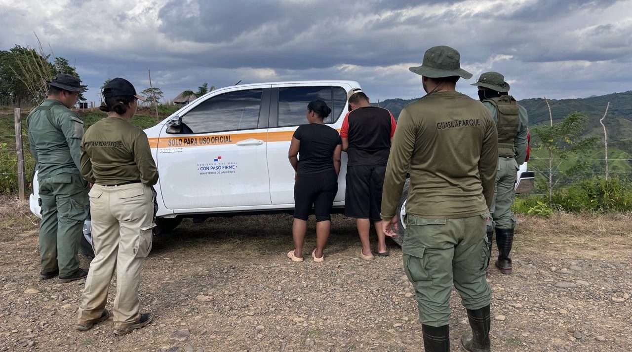 Panamá, 22 de febrero de 2026.- Guardaparques del Ministerio de Ambiente (MiAmbiente), en conjunto con unidades de la Policía Ambiental, aprehendieron a un hombre y una mujer sorprendidos realizando actividades de minería ilegal en el cauce del río Tebario, dentro de la Reserva Forestal El Montoso.