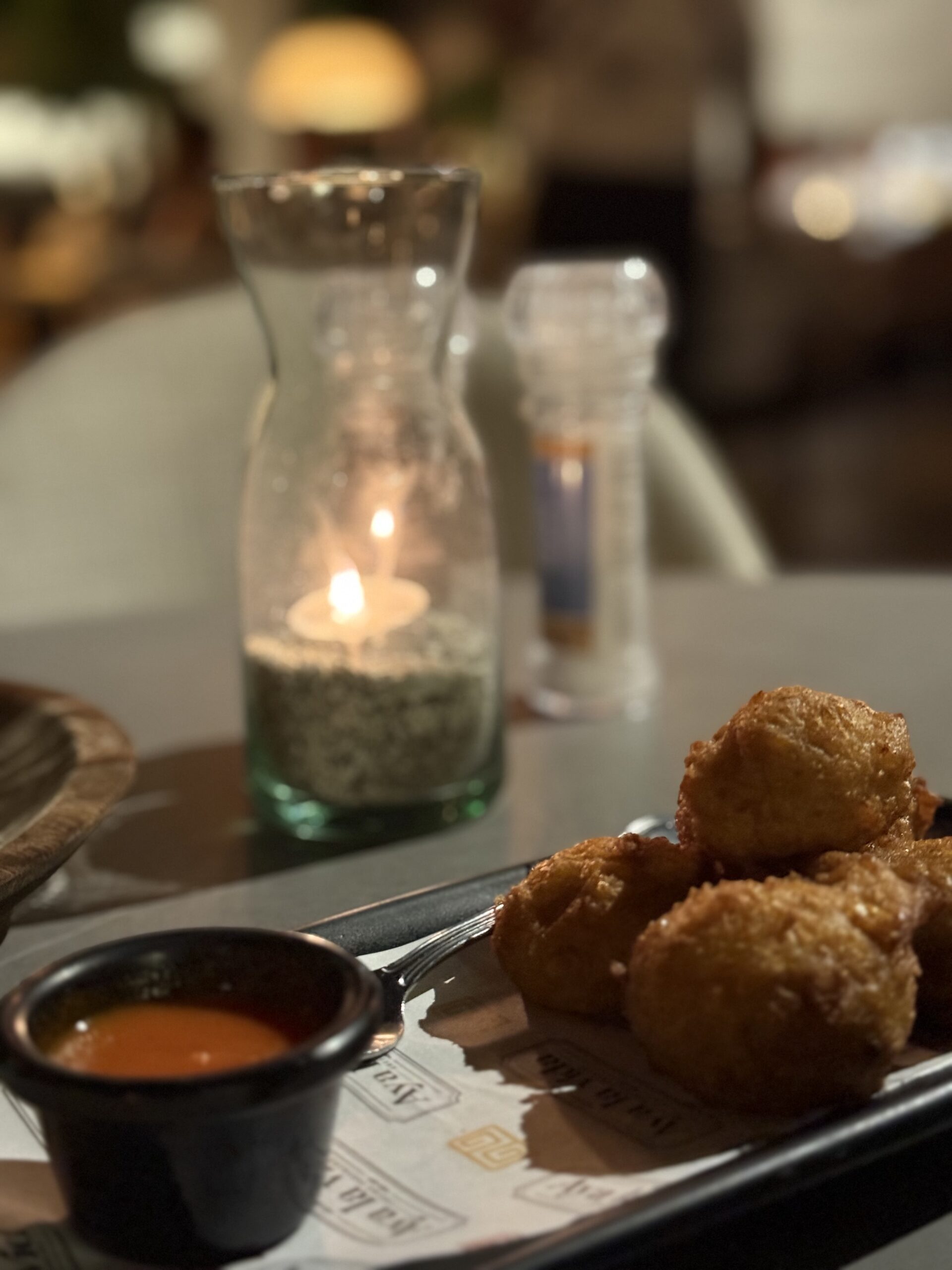 La velada inició con entradas que conectan de inmediato con la memoria gustativa panameña. Los Buñuelitos de Maíz, elaborados con una masa suave y esponjosa, rellenos de queso nacional y acompañados de una salsa criolla a base de tomate, pimentón y cebolla, marcaron un inicio reconfortante y lleno de sabor.