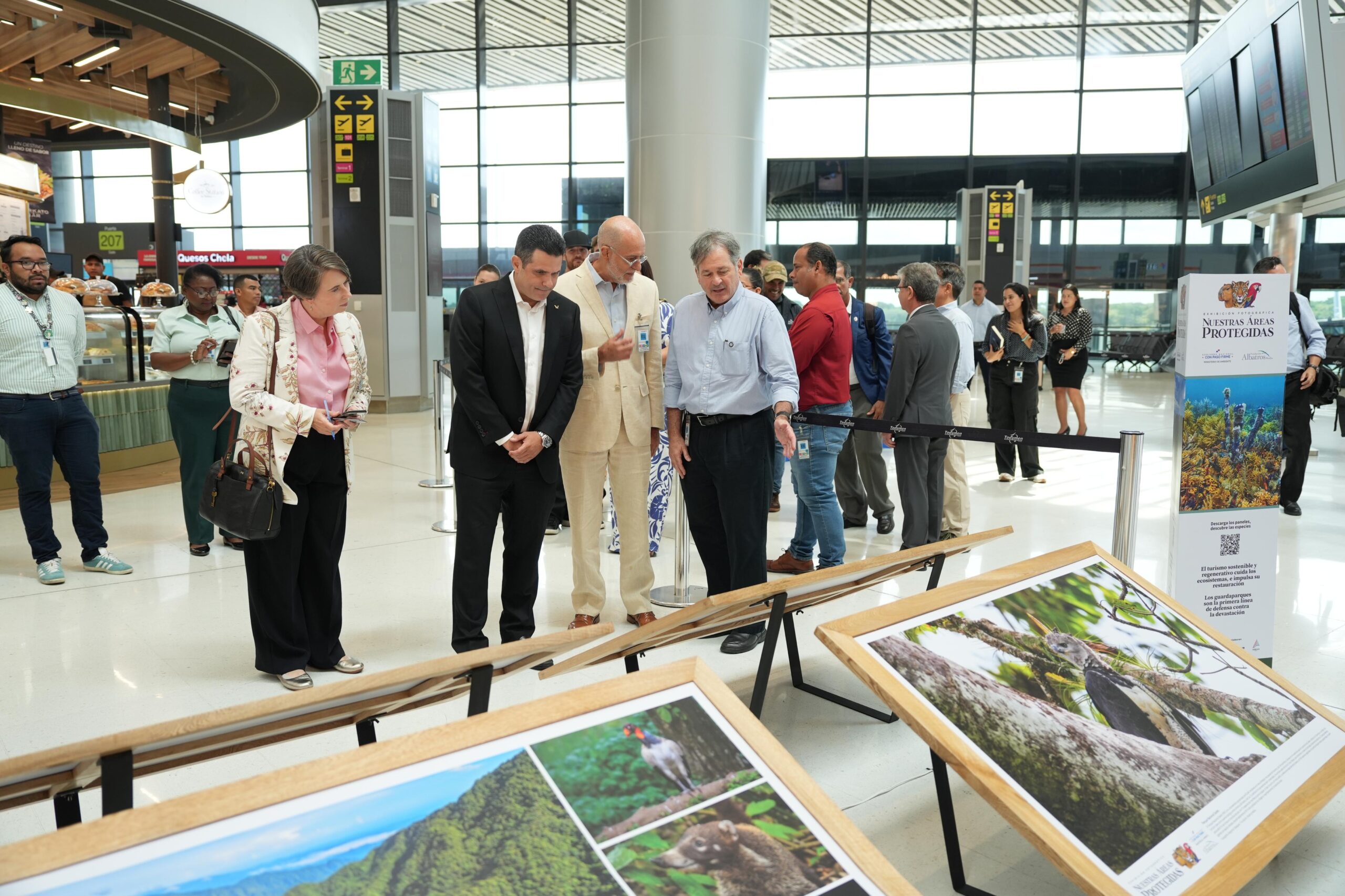 Panamá, 09 de abril de 2026.- El Ministerio de Ambiente (MiAMBIENTE), en alianza con la Fundación Albatros Media, inauguró en la Terminal 2 del Aeropuerto Internacional de Tocumen la exposición itinerante “Nuestras Áreas Protegidas”, una muestra compuesta por 30 paneles informativos que integran fotografías y material audiovisual de diversos ecosistemas del país.