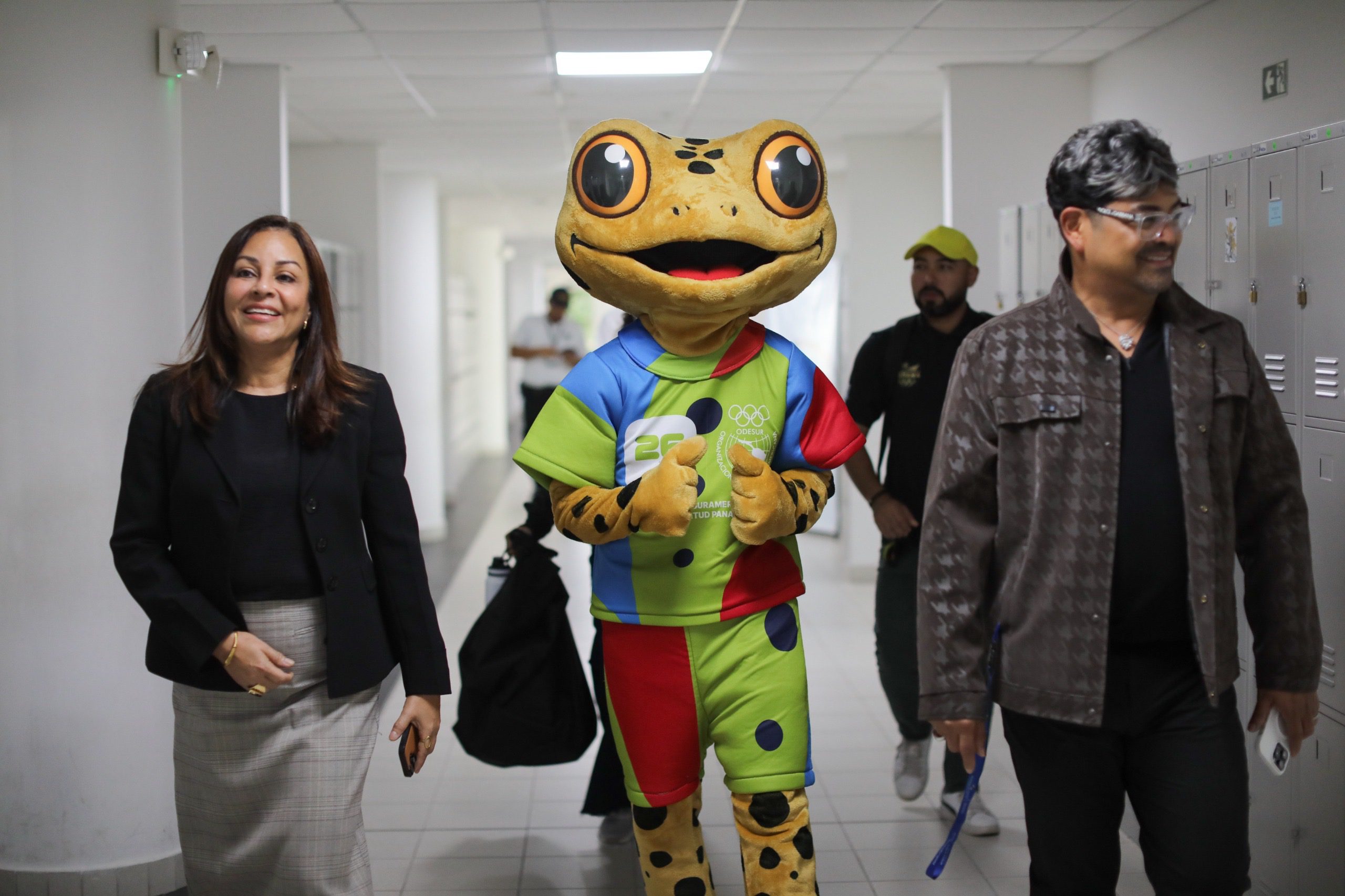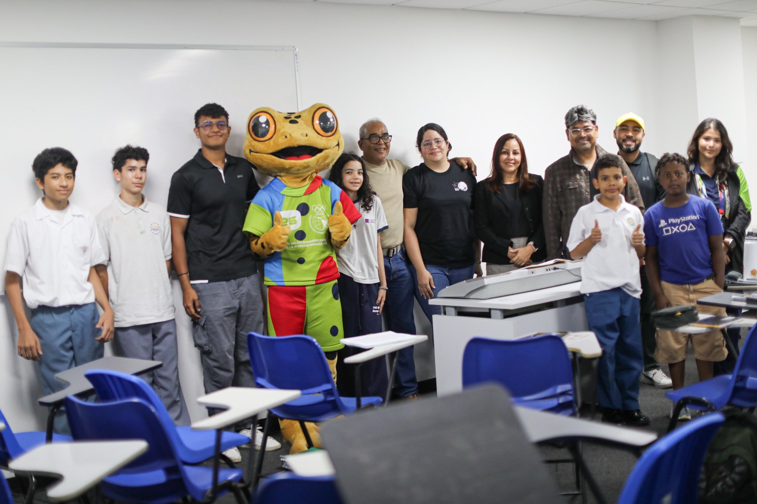 Durante su recorrido, la mascota compartió con estudiantes de música, danza y teatro, además de interactuar con niños, jóvenes y adultos presentes. A través de dinámicas, juegos y preguntas, promovió el conocimiento sobre la rana dorada y su relevancia en la biodiversidad panameña, al tiempo que incentivó el entusiasmo por el evento deportivo.