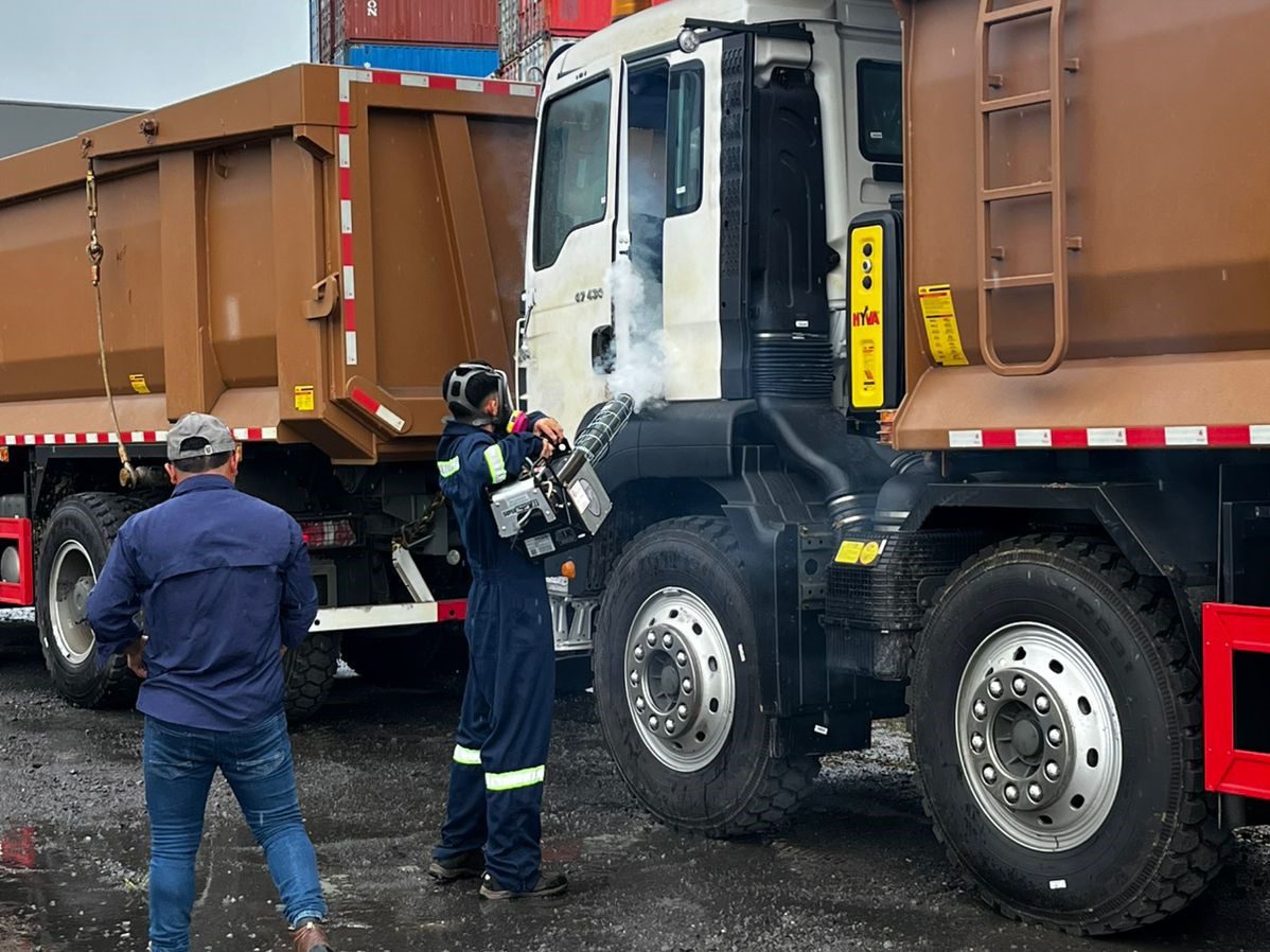 Como parte de los protocolos preventivos, la entidad destaca los tratamientos aplicados a maquinaria y equipos usados al momento de su descarga en recintos portuarios. Estos deben pasar obligatoriamente por arcos de aspersión y someterse a procesos de termonebulización antes de su movilización interna, con el objetivo de eliminar residuos orgánicos, tierra o material vegetal que puedan facilitar la propagación de organismos nocivos.