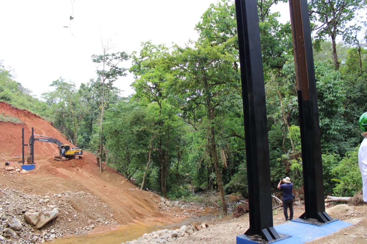 Posteriormente, la comitiva se trasladó a Llano Ñopo, donde el MOP construye un puente modular vehicular sobre el río Rey. El supervisor de puentes, Ramírez Jaramillo, informó que la estructura tendrá una longitud de 140 pies, será de doble vía y beneficiará a más de 2,000 personas al mejorar la conectividad terrestre en esta zona.