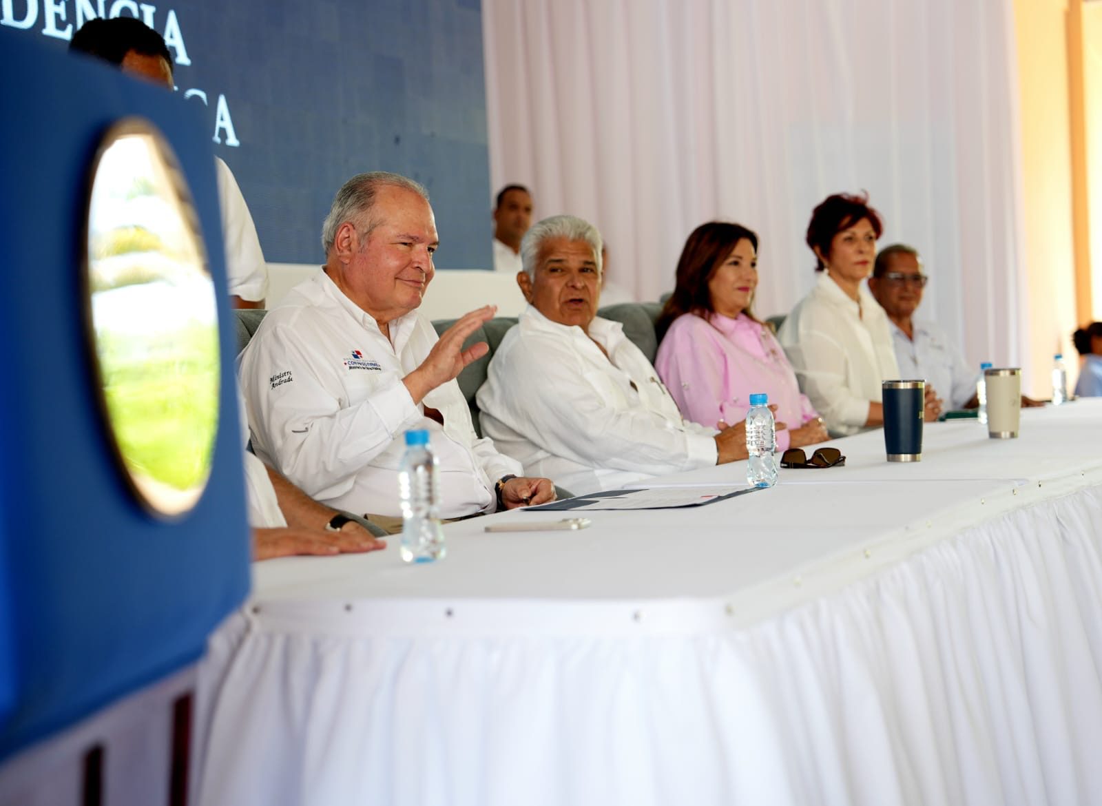En el acto estuvieron presentes la primera dama de la República, Maricel Cohen de Mulino; el ministro de la Presidencia, Juan Carlos Orillac; ministros de Estado; el contralor general de la República, Anel Flores; los gobernadores Marilyn Vallarino (Panamá Oeste) e Irving González (Coclé); diputados, representantes de las empresas contratistas y pobladores de las comunidades beneficiadas con las obras.